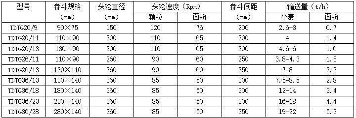 一、工作原理 传动机构(可根据用户要求制作)通电后,带动头轮使畚斗带由下而上循环运动,通过固定在畚斗带上的畚斗,将进入机座进料口的物料装满传送到提升机头部,由于头部